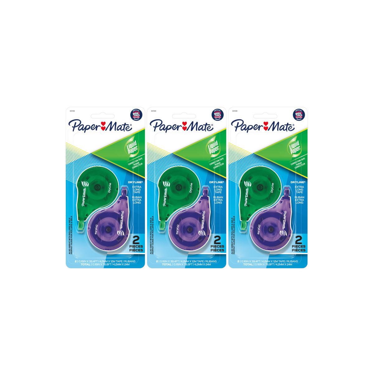 Instantly cover your mistakes without any mess using the Liquid Paper DryLine Extra Long Correction Tape. With nearly 40 feet of tape, this convenient dispenser enough tape for plenty of corrections. Ideal for school and office work, this tape lays down smoothly and corrects instantly, so you never need to wait for it to dry before copying, rewriting, or retyping. You'll also enjoy an ergonomic shape that fits comfortably in your hand providing a secure hold for added control. And here's a tip for the best corrections: place your paper on a firm, flat surface and slowly roll the applicator over the error using firm, even pressure. Do-overs done right, it's like mistakes were never even there. Each pack includes 2 correction tapes. Sold as 3 packs for a total of 6 correction tapes.