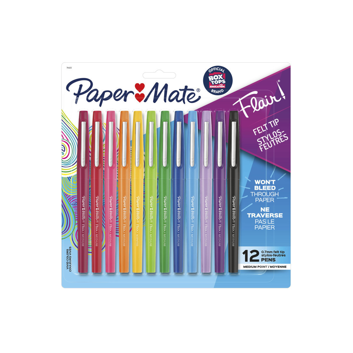 Boost your writing fun-factor with Paper Mate Flair Felt Tip Pens! With a rainbow of bright colors and smear-resistant ink that won't bleed through the page, these colored pens make writing a blast. The medium point (0.7mm) writes in bold, colorful lines so your self-expression makes a major statement. The best part of all? Everything you can create—whether you're taking notes, drawing, doodling, or doing anything else that inspires you. With Flair Pens, there's no limit to your fun. Pack of 12.