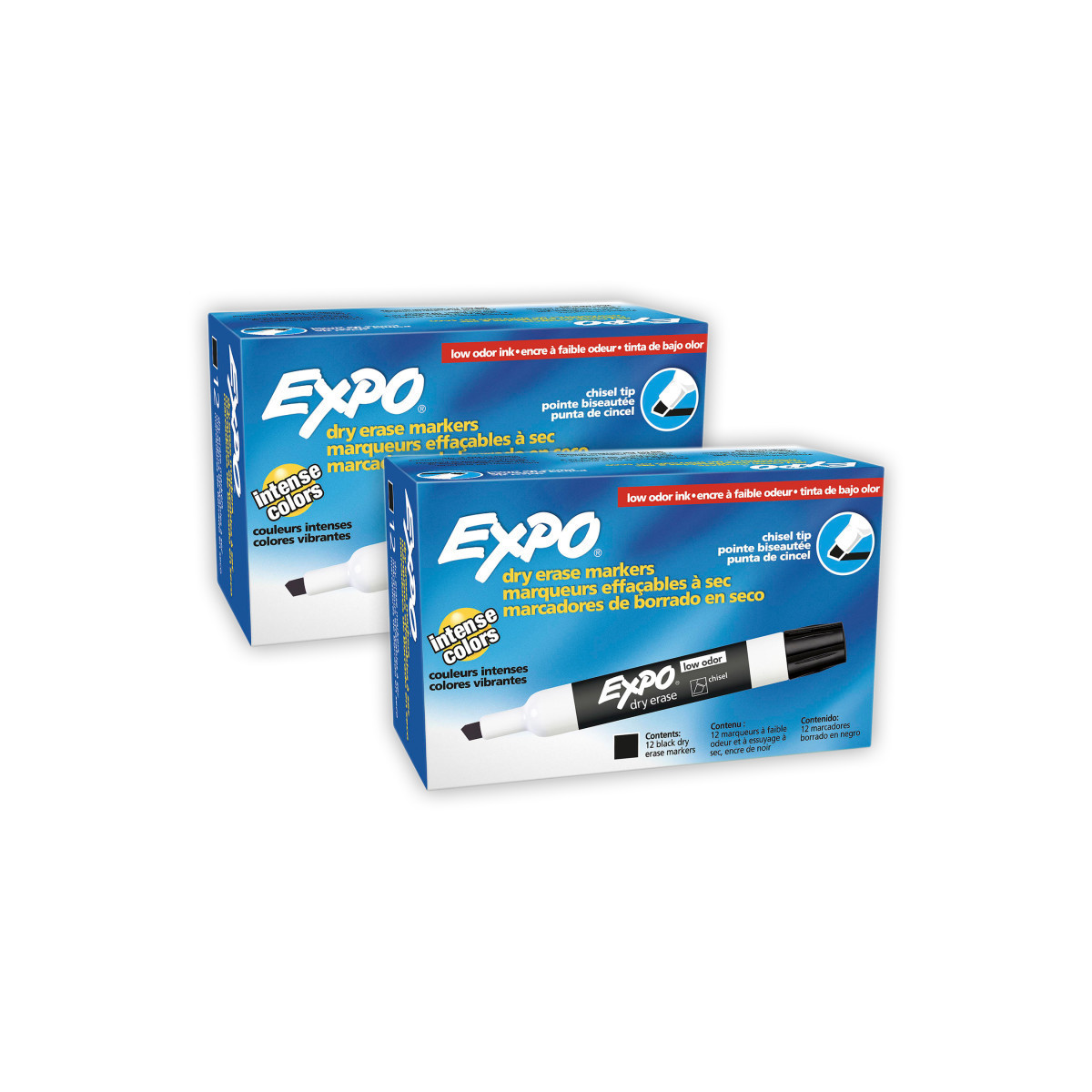 Keep your classroom engaged, create compelling presentations and stay organized at home with Expo Low Odor Dry Erase Markers. These whiteboard markers are available in a bold range of colors that produce consistent marks with less skipping. Use Expo dry erase markers to track, schedule and present your point in a brilliant fashion. Intense, bold colors take center stage even from a distance. Each box includes 12 markers. Sold as 2 boxes for a total of 24 markers.
