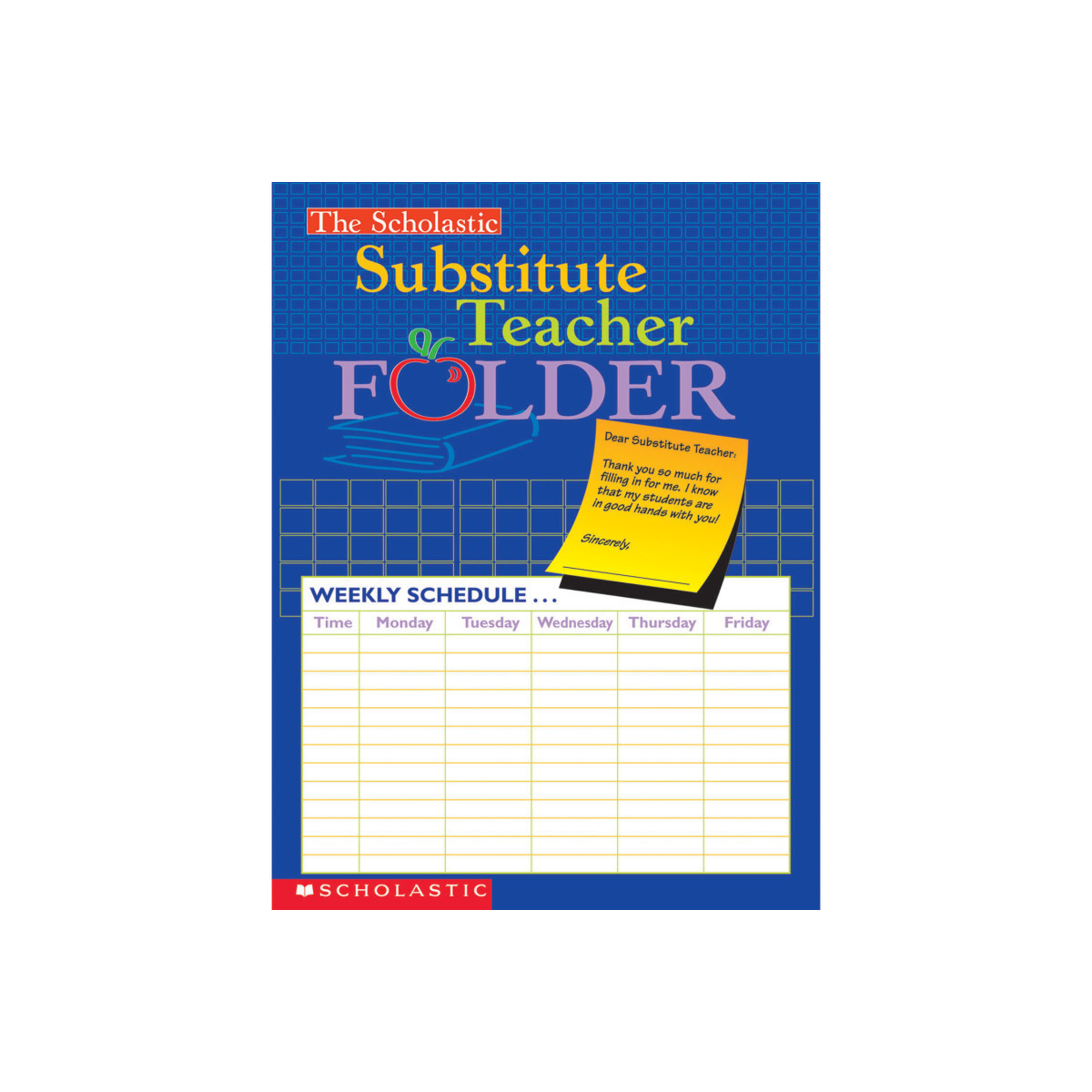 This full-color folder includes ample space for filling in all the information a substitute teacher needs!