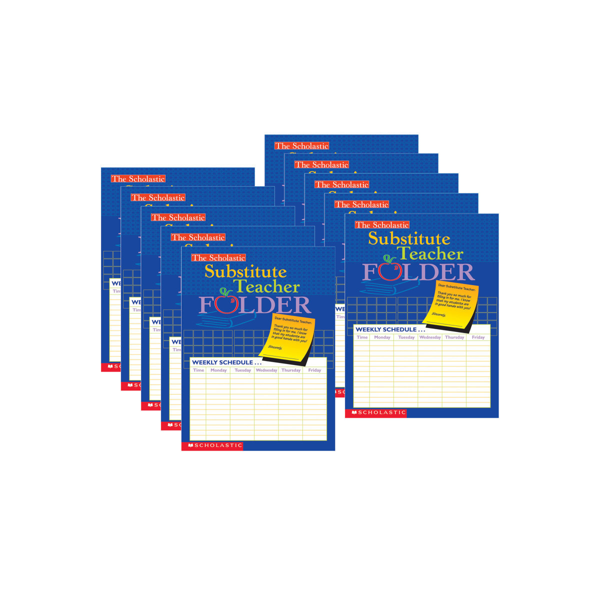 This full-color folder includes ample space for filling in all the information a substitute teacher needs! Features a handy storage pocket, charts, checklists, helpful notes, and more. Sold as a pack of 10 folders.