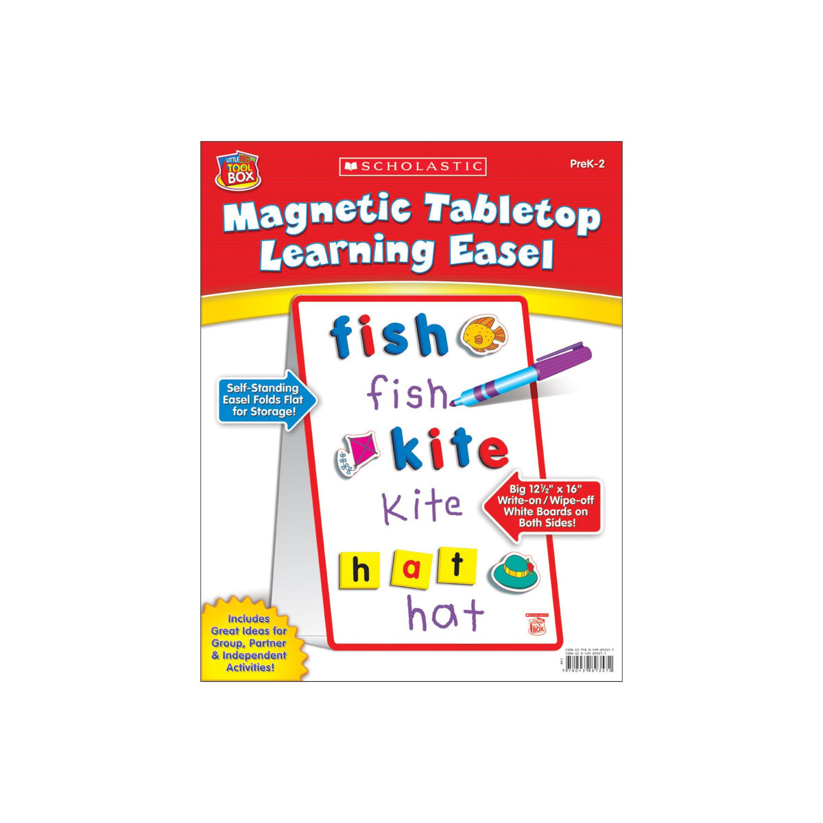 The Magnetic Tabletop Learning Easel is one of the simplest-yet also most versatile-literacy tools around! No matter what your students' skill level or classroom needs, there's something for everyone, from word and sentence-building to alphabet recognition. The sturdy easel stands alone on a tabletop, and then folds flat for easy storage. Its blank, magnetic write-on wipe-off surface can be used for teacher-led instruction, independent work, and partner activities. Includes a Self Standing 12" x 16" easel with magnetic, write- on/wipe-off surface on both sides, and a teaching guide with ideas for independent and group learning.