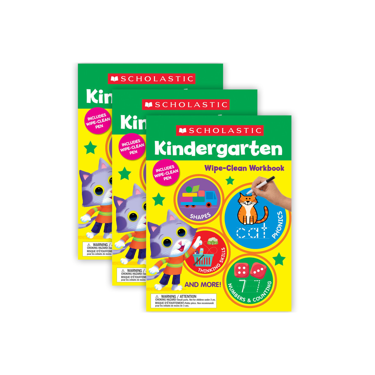 Scholastic believes learning should be fun! This irresistible activity book includes delightful activities that are just right for your child. Play-based pages impart key kindergarten skills through ultra-engaging puzzles and games. Explore phonics, counting, shapes, colors, and more, Use the special pen to complete each page, then wipe clean to start again. Sold as a pack of 3 identical books.