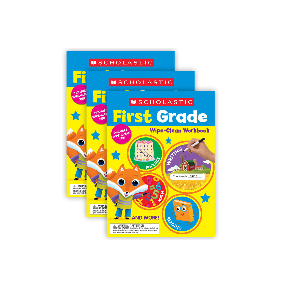 Scholastic believes learning should be fun! This irresistible activity book includes delightful activities that are just right for your child. Play-based pages impart key grade 1 skills through ultra-engaging activities. Your child will dive into fun phonics, reading, writing, and math activities and more! Use the special pen to complete each page, then wipe clean to start again. Sold as a pack of 3 identical books.