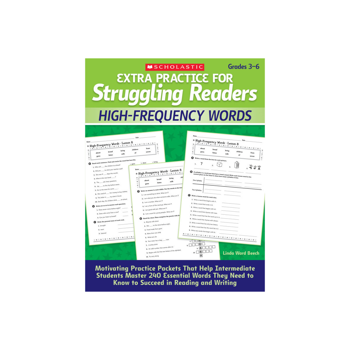 Often called "sight words" because readers need to know them at a glance, high-frequency words can prove challenging for students. This resource offers dozens of practice pages that give older struggling readers multiple opportunities to review and really learn common tricky words-such as which, listen, enough, and answer-that aren't easily decodable and don't follow the usual sound-spelling relationships. When students can identify high-frequency words quickly and accurately, their reading fluency increases, and their reading comprehension improves. With repeated practice, students develop automatic recognition of dozens and dozens of words and become more fluent readers.