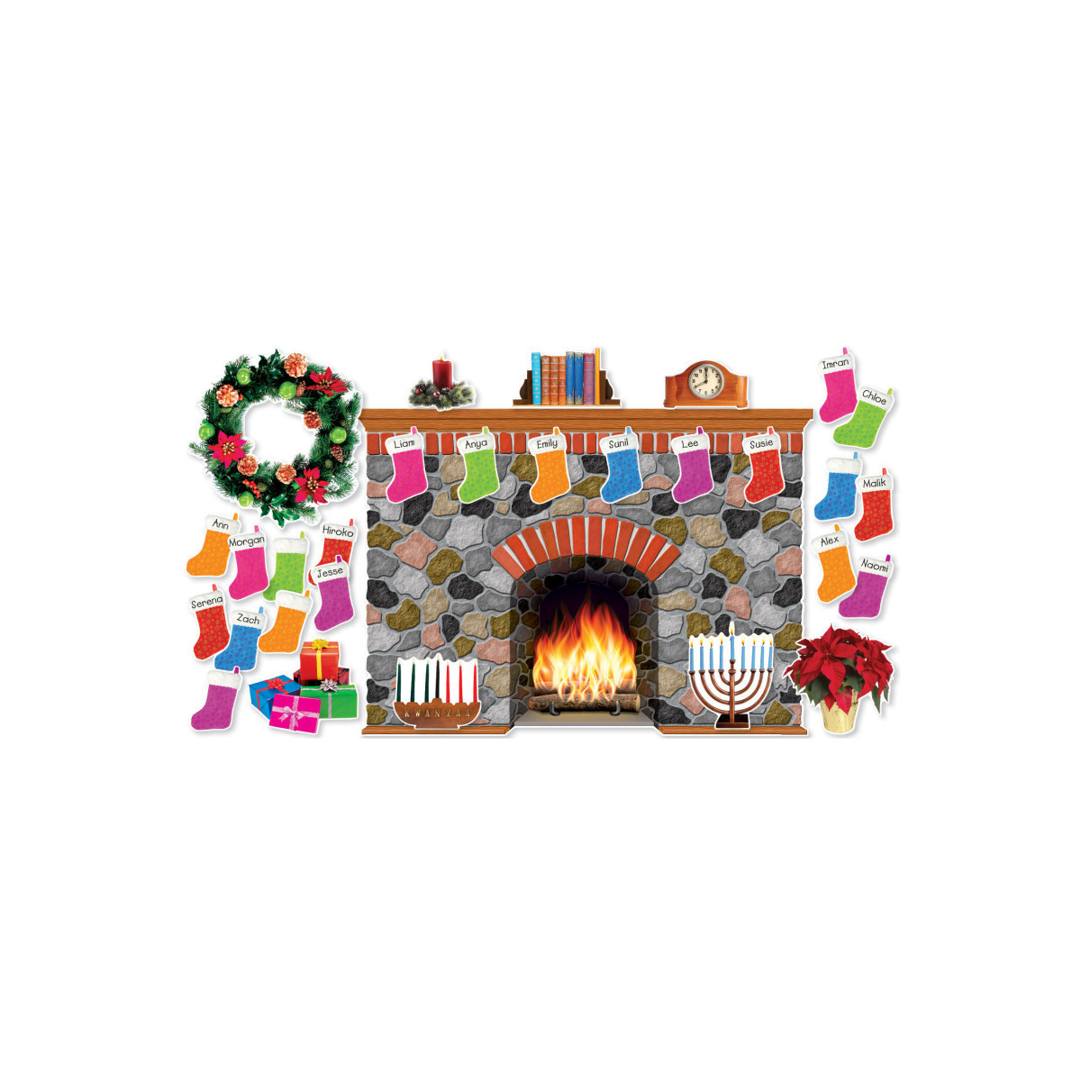 Put children in the spirit and celebrate the season with this realistic winter holiday bulletin board set. Includes photo accents for Christmas, Hanukkah, and Kwanzaa. A must-have for the holiday season!