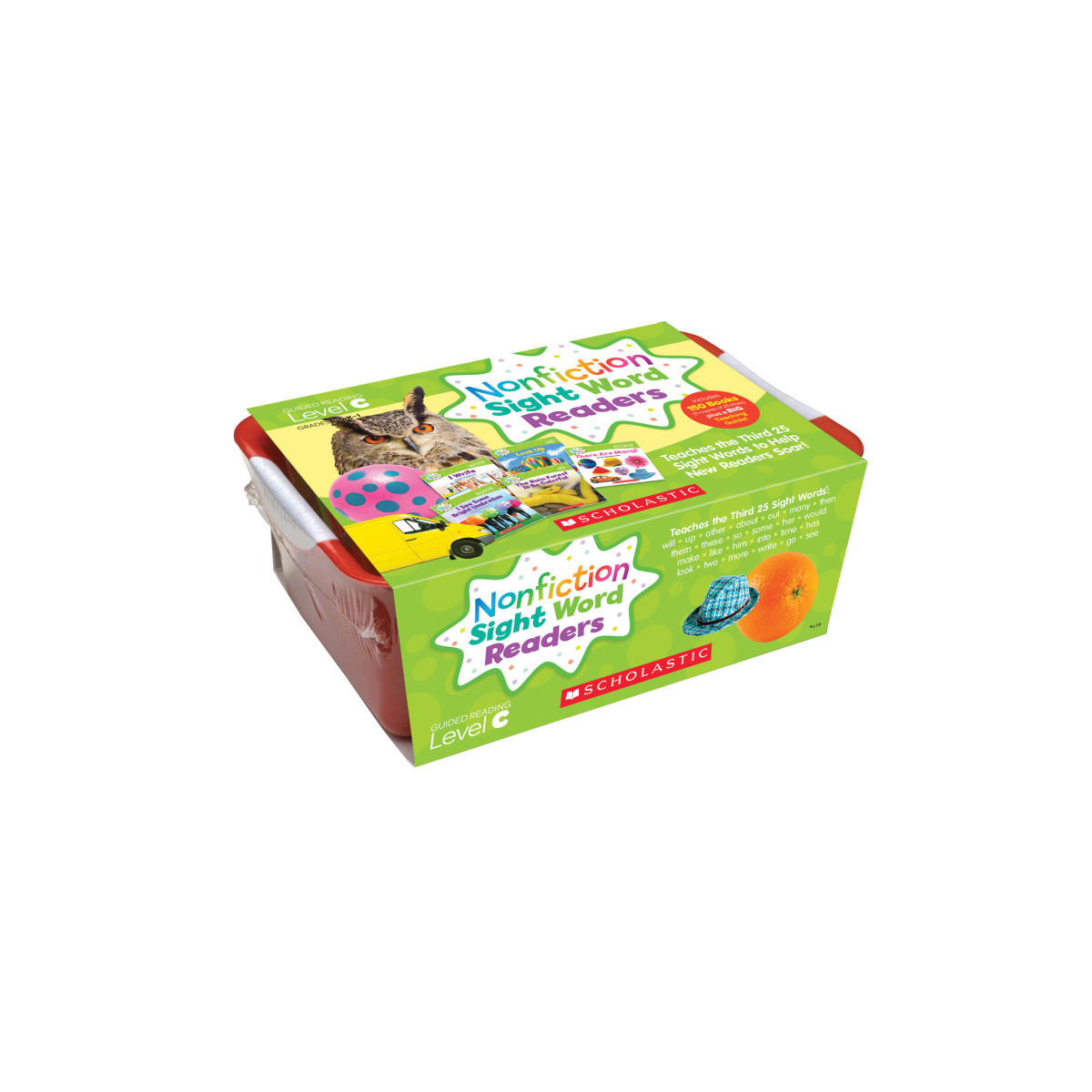 Set the stage for new readers to soar with these just-right books that teach the third 25 sight words! This sturdy tub includes 6 copies of 25 titles, each focused on a key sight word from the Fry List: will, up, other, about, out, etc. The books' real-world topics with predicable text are super-engaging to make mastering these must-know words easy and fun. Includes a big teaching guide filled with strategies and reproducibles to reinforce sight-word knowledge. And here's more great news: The books, correlated with Guided Reading Level C, are perfect for group learning!