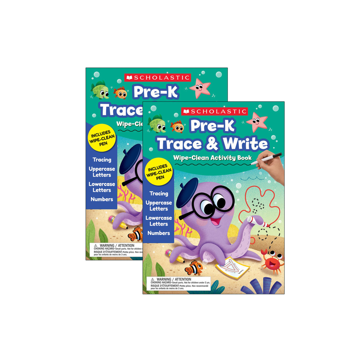These fun and educational wipe-clean activity books develop learning skills including letter, number, and word recognition! Each title is 56 pages of mazes, connect the dots, word searches, hidden pictures, and more engaging activities that kids will love to do again and again. Sold as a pack of 2 identical activity books, each with pen.