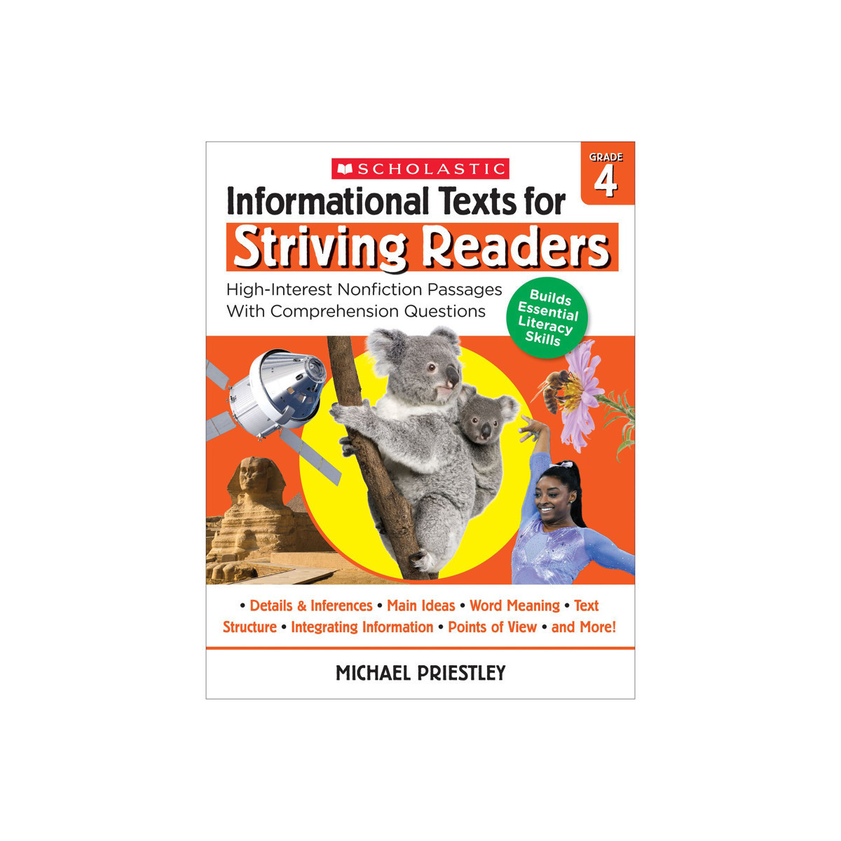 Expand students' reading-comprehension skills with this collection of 35 high-interest informational texts that are sure to keep them engrossed. The easy-to-read passages are organized in ten chapters that focus on specific reading standards and skills, including details and inferences, text structure, relating events and ideas, interpreting information, and more. Comprehension questions follow each passage. There's also a summative practice test as well as an answer key with rationales.