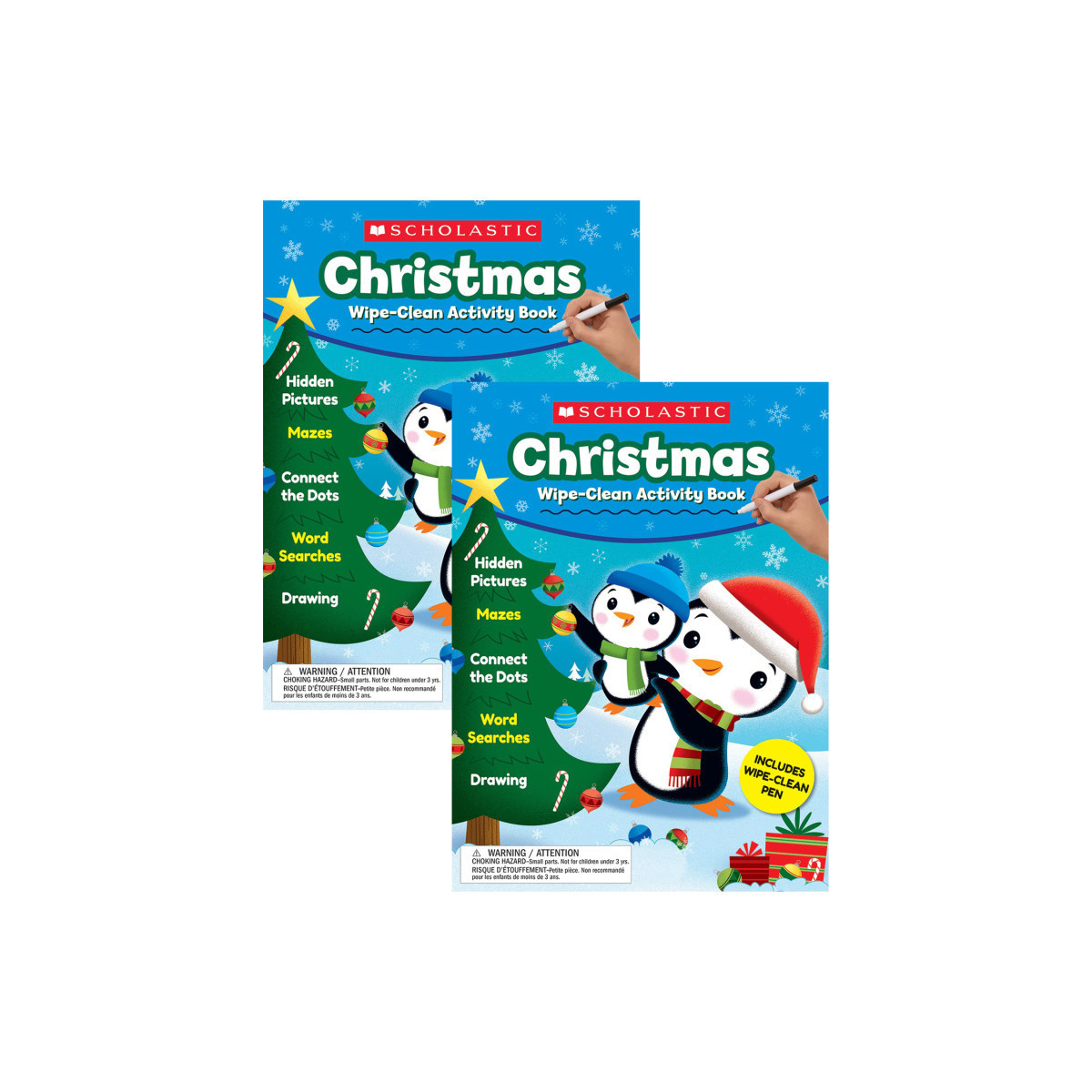 Unwrap hours of festive fun with this colorful wipe-clean activity book. The 56 pages of mazes, connect the dots, word searches, hidden pictures, and more give kids some holiday cheer as they develop key skills they need in school. Sold as a pack of 2 identical activity books.