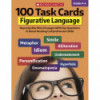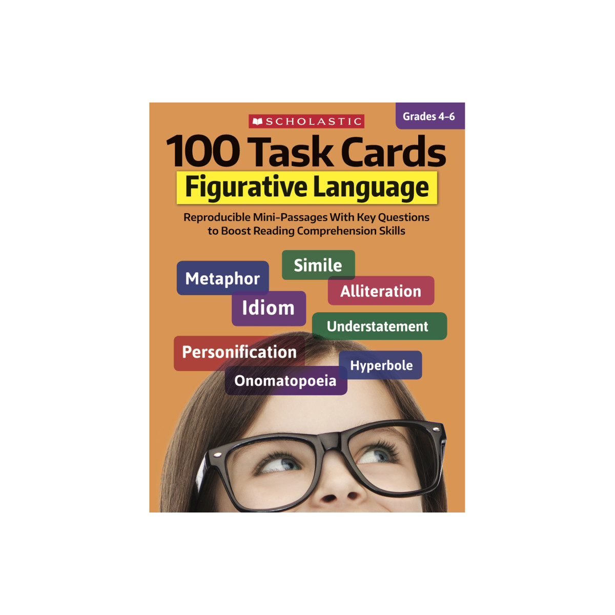 Your students’ comprehension-and writing-abilities will soar with this big collection of no-prep, task cards that teach all about figurative language! Each reproducible card contains a high-interest mini-passage and five key questions to hone must-know skills-in just ten minutes a day. Cards provide guided support to help students master idioms, metaphors, similes, personification, hyperbole, understatement, irony, alliteration, onomatopoeia, and more. Perfect for ESL students and aspiring writers!