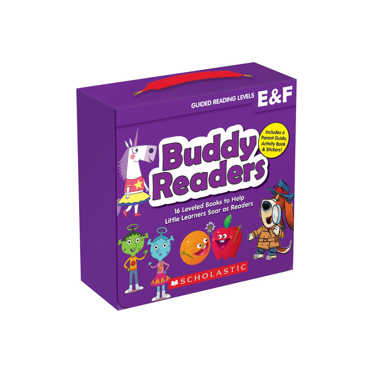 Young learners will adore these humorous, easy-to-read storybooks correlated with guided reading levels E & F. This unique set includes 1 copy of 16 tales—starring Apple and Orange, The Kids From Mip, Violet the Unicorn, and Detective Dog—for a total of 16 books! As children read, they'll grow attached to these irresistible characters AND build essential early reading skills. Each story features one to four simple sentences per page with strong picture cues, which makes them perfect for guided reading or independent reading time. Includes a 32-page activity book and stickers.