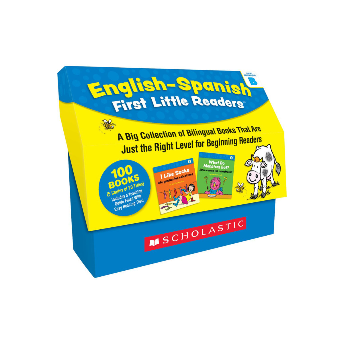 Give English Language Learners the support they need in reading with these irresistible little books featuring text in English and Spanish. Written to correlate with Guided Reading Level B, these simple, predictable stories feature high-frequency words, rhyming, repetition, and helpful illustrations on topics students love. Perfect as a bilingual resource for early learners or for introducing English speakers to a new language. Includes 100 full-color, 8-page books (5 copies of 20 titles), 32-page teaching guide and a sturdy storage unit.