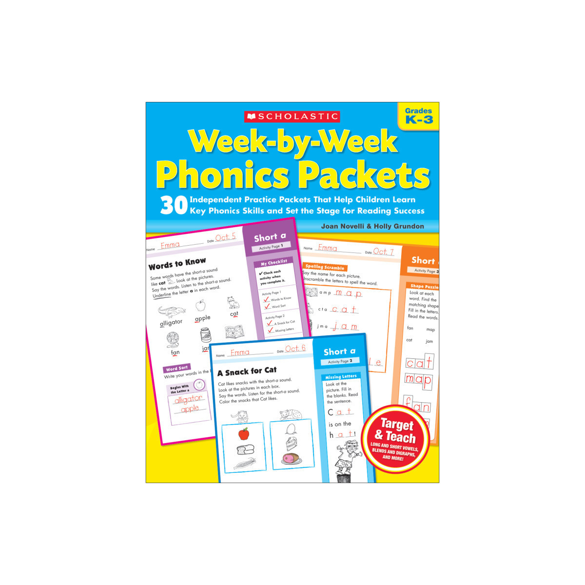 These easy-to-manage, ready-to-reproduce practice packets are a perfect way to target the phonics skills children need to master. Activities include word-shape recognition puzzles, fill-in rhymes, riddles, and stories, word searches, scrambled sentences, word sorts, and much more. Children can work through the packets independently and at their own pace. Perfect for in-class use or homework. An effective tool for supporting second-language learners and RTI instruction.