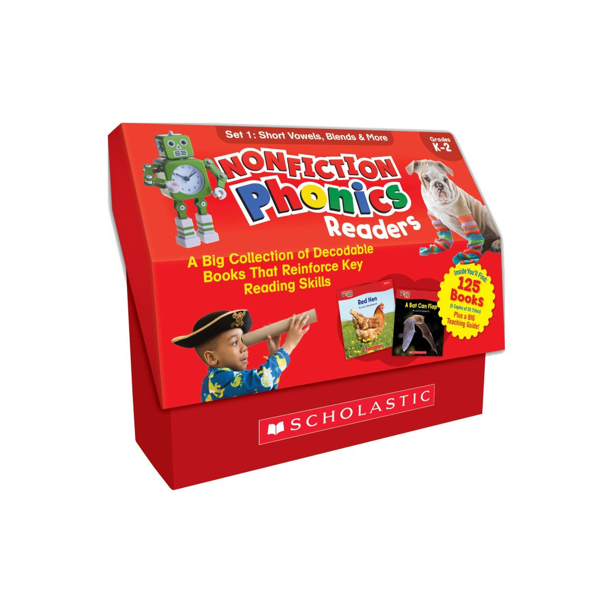 Add Nonfiction Phonics Readers SET 1 to your classroom and watch your students' literacy skills soar! This big collection includes 125 books (5 x 25 titles) that target key phonics concepts: short vowels, blends, plurals, and more. Each title features clear photos, just-right decodable text, and kid-pleasing real-world topics such as pets, frogs, bugs, friendship, trucks, weather, and so many more. Comes with a 32-page teaching guide. Perfect for group and independent learning.
