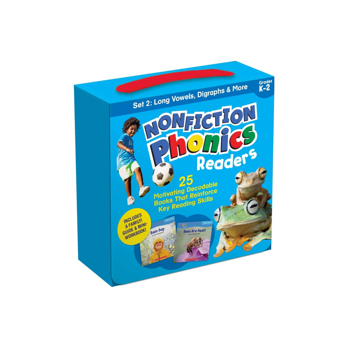 Give your child the tools to become a successful reader with this big, 25 book collection of titles that target must-know concepts: long vowels, digraphs, two syllable words, and more. Each title features clear photos, just-right decodable text, and lively real-world topics as bees, mice, rain, boats, whales, friendship, and so many more. Includes a caregiver guide and mini-workbook to reinforce learning.