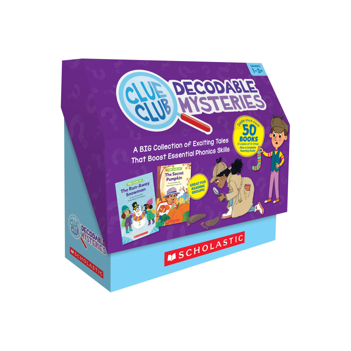 Take students to the next level as readers with this exciting set of highly decodable mystery tales! Inside this bright box, you'll find 50 books (5 x 10 titles) that are perfect for group learning. Each story features four to eight sentences per page with words containing short and long vowels, blends and digraphs, vowel teams, and controlled r. Includes instant comprehension questions and a tip-filled teaching guide with skill-building reproducibles. Just right for growing readers!