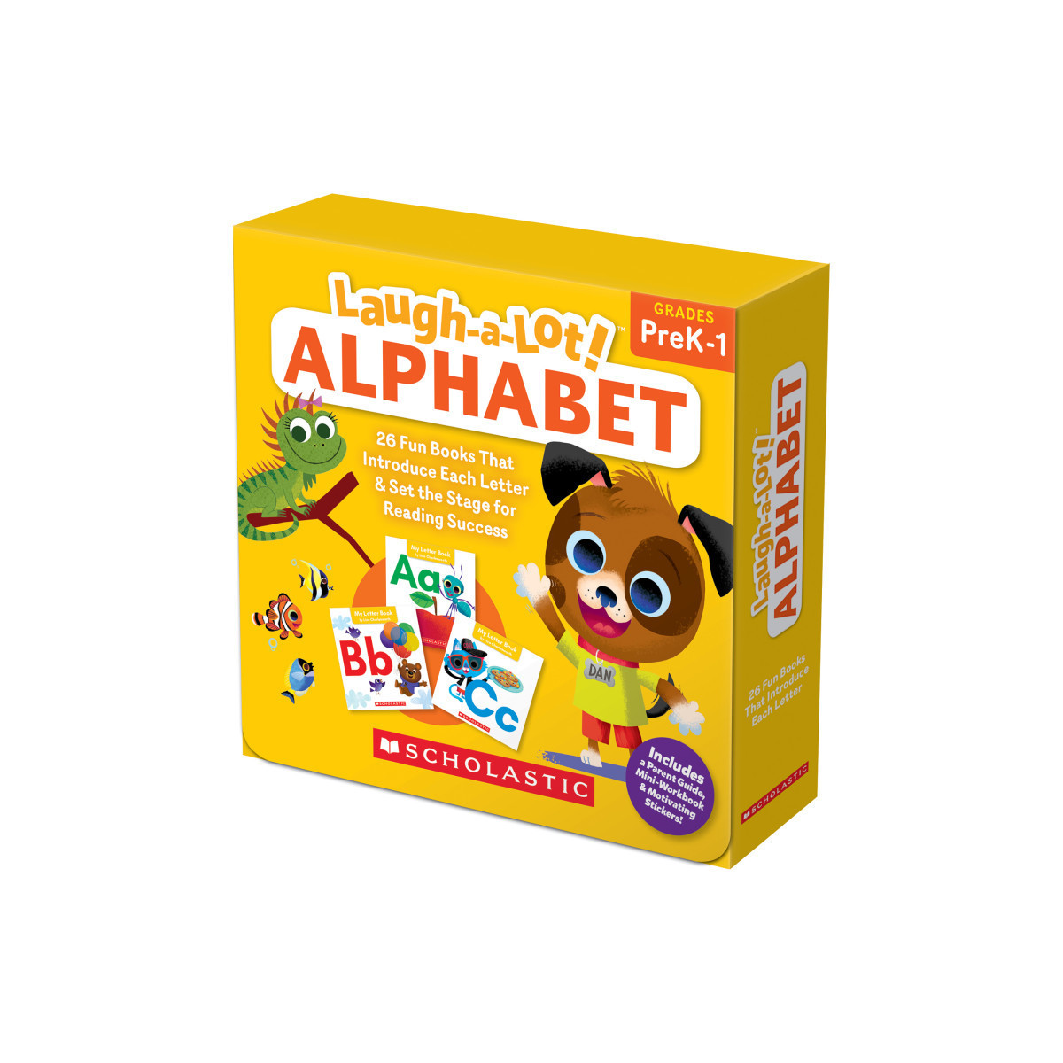 Help your child soar with this irresistible A-to-Z book set! Inside this bright box, you'll find 26 titles that target and teach each letter of the alphabet via a humorous tale and a host of easy activities. Includes a tip-filled family guide, mini-workbook, and motivating stickers. That's everything you need to set the stage for literacy success. Content is based on the latest Science of Reading research!