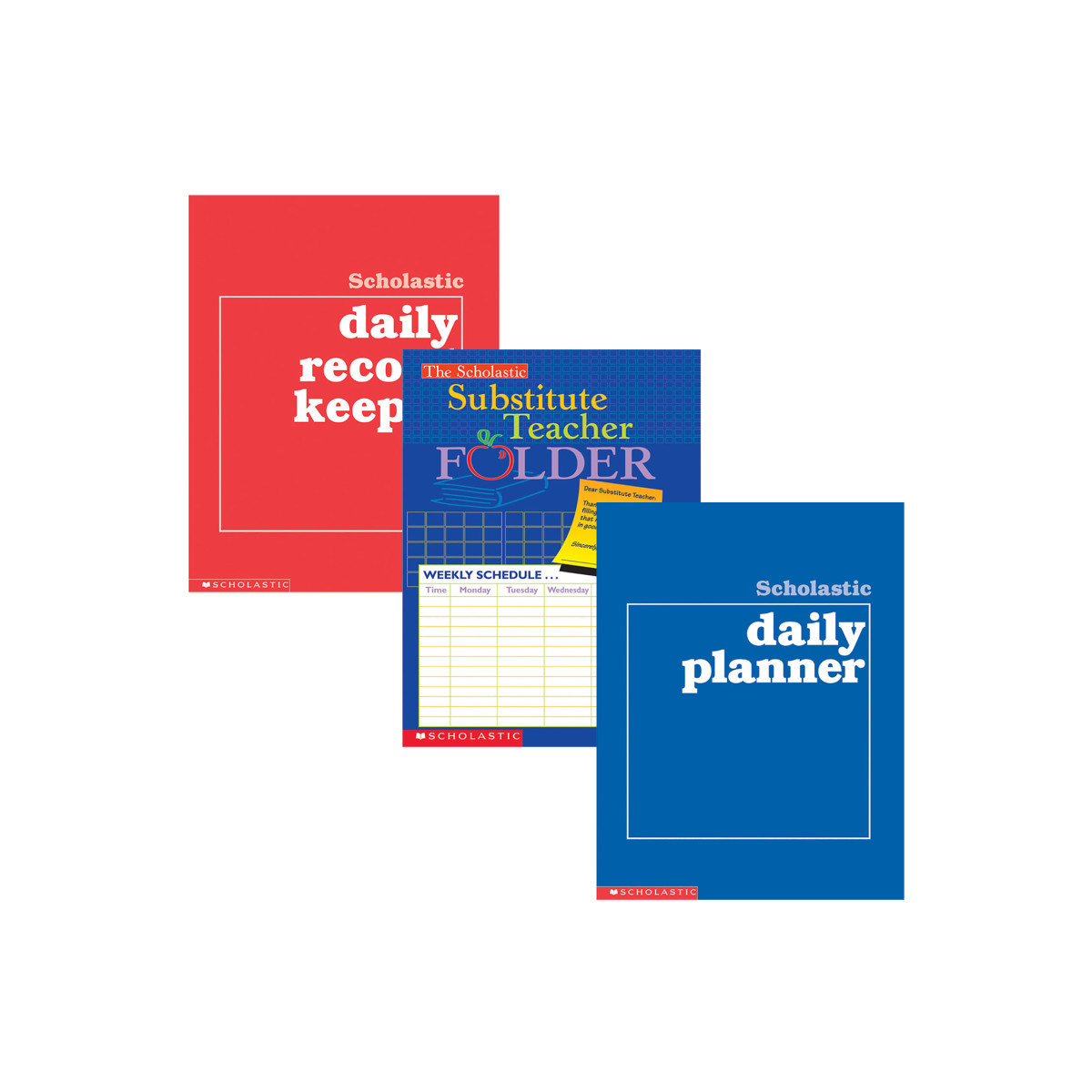 Don't get caught without a plan! The Scholastic Planner & Record Keeper Bundle includes 3 essential tools for teachers: a Substitute Teacher Folder, a Daily Planner, and a Daily Record Keeper. Each piece has been designed to help teachers and substitute teachers stay organized and make record-keeping easier. The full-color substitute folder includes ample space for filling in all the information a substitute teacher needs, and features a handy storage pocket, charts, checklists, helpful notes and more. The Daily Planner features planning forms for every week of the school year, plus a class roster. The Daily Record Keeper features easy-to-use forms for recording grades in all subject areas. The Substitute Teacher Folder measures 9-1/2" x 11". The Daily Planner measures 8-1/2" x 11", and includes 88 pages. The Daily Record Keeper includes 64 pages.