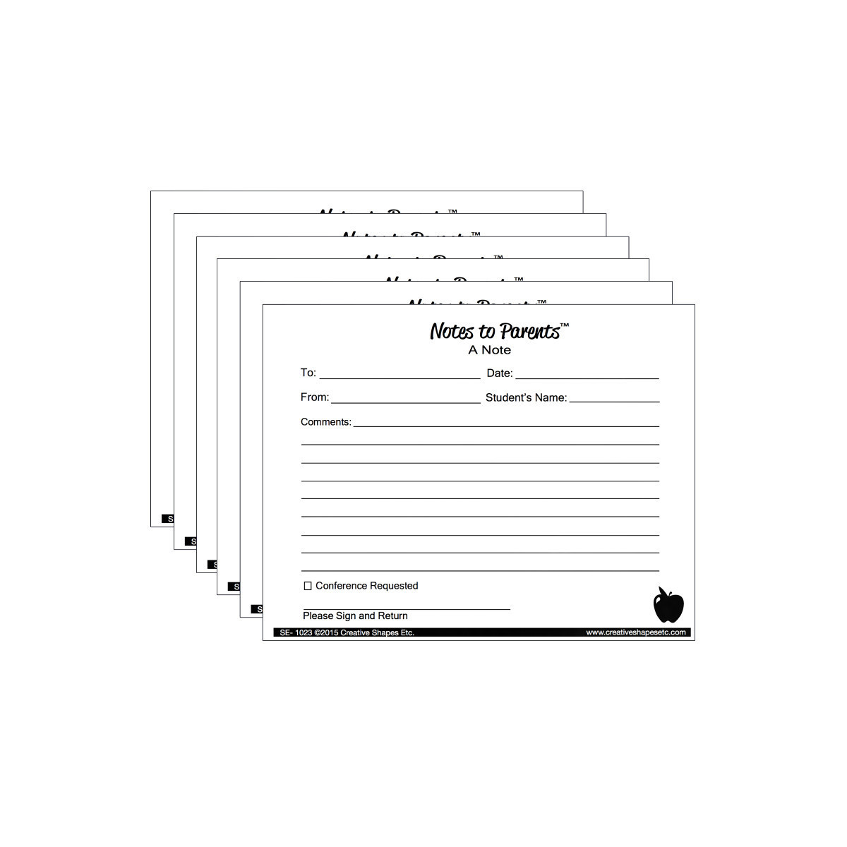 MADE IN USA: Blank Note - Notes to Parents come with 50 two-part carbon-less forms in a package, measure 4.25" x 5.5" and are made in the USA.