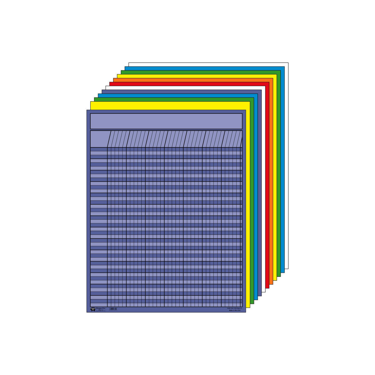 Our Vertical Chart Set contains an assortment of 12 colors of our Vertical Charts (22" x 28"). Colors can vary depending on availability. They come pre-sorted in a plastic bag. Each chart has 1/2" x 1/2" squares printed on heavy tagboard.