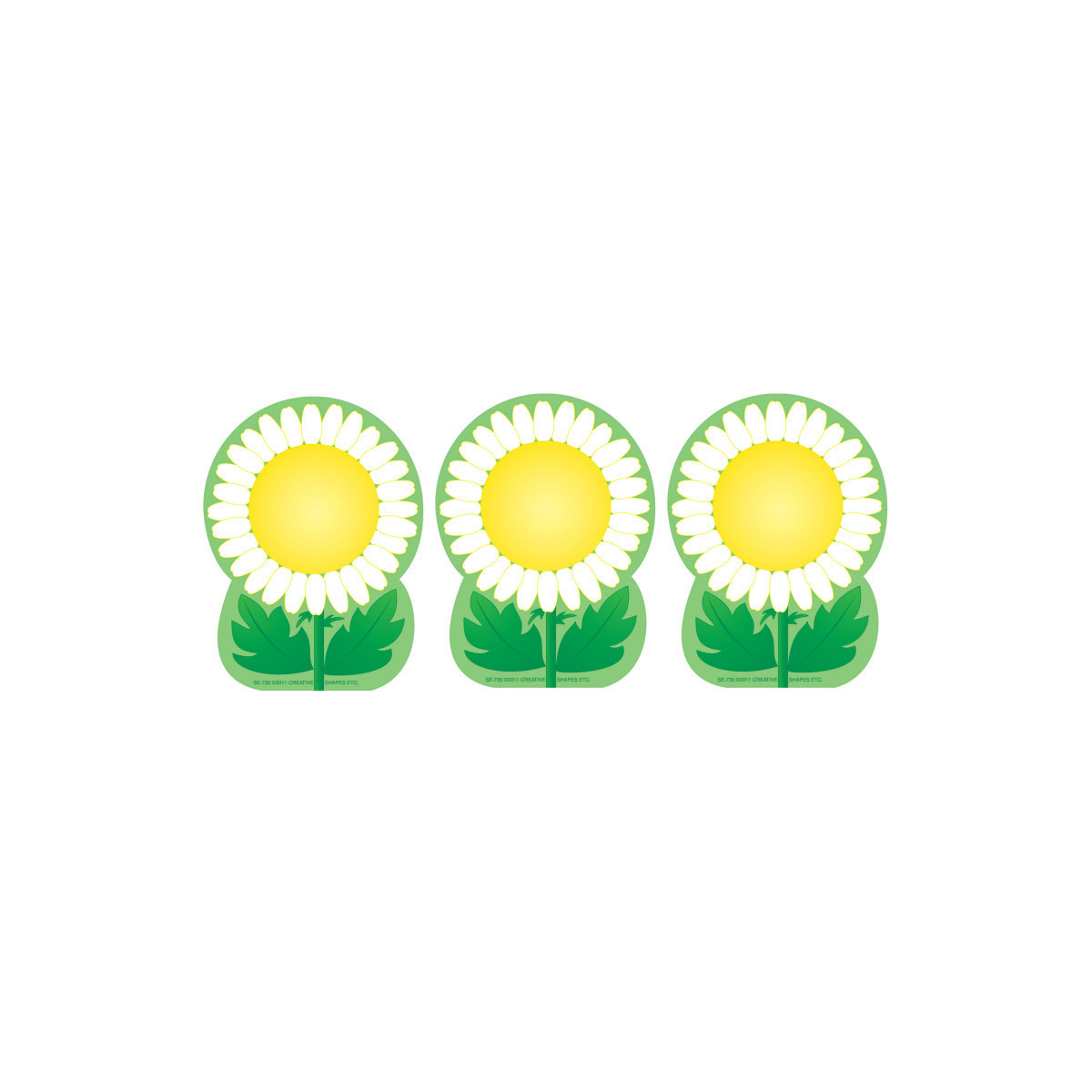 Why write on a plain notepad when you can add some fun and creativity to your writing with a cute die-cut design! The Daisy mini notepad is perfect for school, home and office use. These notepads work great for a variety of different tasks, such as handwritten notes and messages, reminders, to-dos and grocery lists. They are perfect for sending notes home to parents, progress notes, awards, encouraging notes to students and more. Use them to create shaped books for vocabulary and other creative writing practice, flash cards, use as nametags, decorate the classroom and bulletin boards, label bins and cubbies and much more. There are so many different and creative ways you can use these notepads that the possibilities are endless! These notepads even make great teacher gifts, stocking stuffers, party favors and more. The Daisy Mini Notepad is approximately 3" x 3" and comes with 35 sheets to a notepad. The design is throughout the entire notepad on all of the pages. Sold as a pack of 3 notepads.