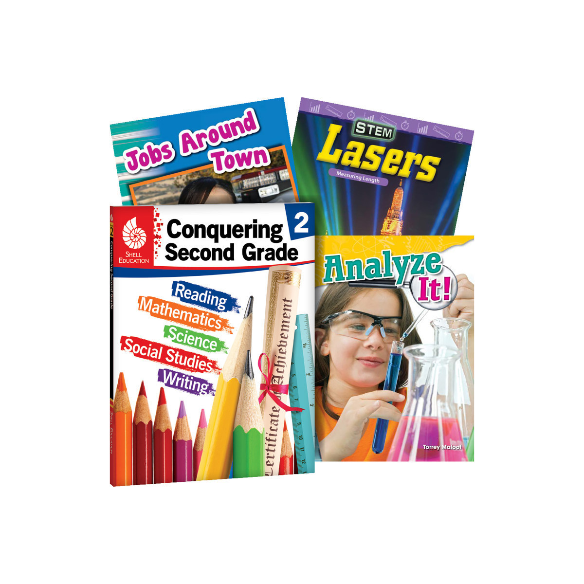 Strengthen the home-school connection and boost student achievement with this 4-Book Set of student and parent resources! This dynamic collection reinforces the concepts students are learning in second grade, and challenges their thinking to boost performance and help advance students' skill level. Conquering Second Grade is designed to supplement students' learning and is divided into 10 units, one for each month of the school year. This standards-based resource builds students' skills in reading, writing, mathematics, social studies, and science through challenging, engaging activities and games. This set also includes three high-interest nonfiction books to strengthen content-area literacy and boost reading skills.