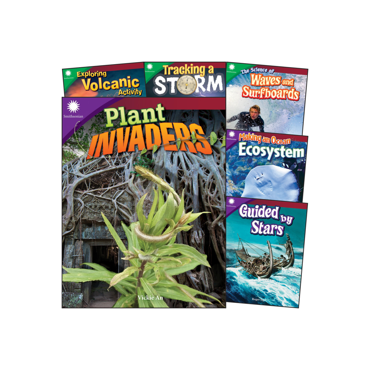 How does an understanding of science make people better surfers? What happens when an invasive plant enters an ecosystem? Students will find the answers to these questions and many more with this STEAM book set devoted to the natural world! Created in collaboration with the Smithsonian Institution, this set builds students' reading skills while engaging their curiosity about STEAM topics through real-world examples. It features hands-on STEAM challenges that are perfect for makerspace activities and that guide students through every step of the engineering design process. It makes STEAM career connections by offering career advice from real-life Smithsonian employees working in STEAM fields. Each book in this set touches on all aspects of STEAM: Science, Technology, Engineering, the Arts, and Math! Take a virtual tour of the Smithsonian with this set that includes these titles: Exploring Volcanic Activity; Tracking a Storm; The Science of Waves and Surfboards; Guided by Stars; Plant Invaders; Making an Ocean Ecosystem.