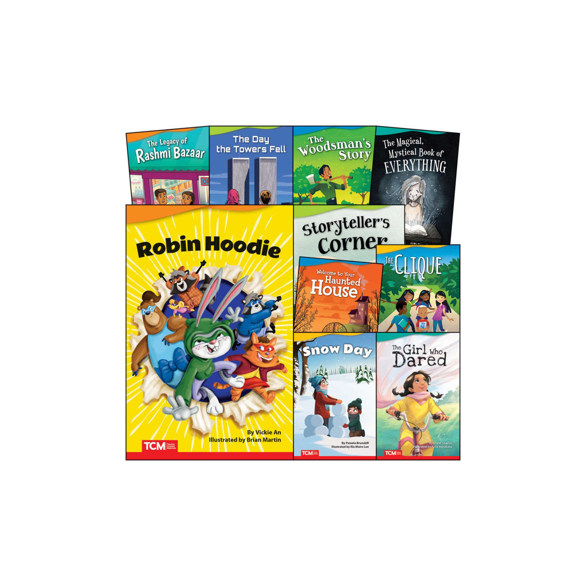 Cultivate a love of reading with illustrated fiction books that encourage students to actively read and re-read. These fun, entertaining books feature compelling text and dynamic illustrations to keep students reading from cover to cover. Motivate today's students with the books they want to read across a wide range of appealing fiction genres including graphic novels, fantasy, adventure, realistic fiction, and retellings of traditional tales. Empower students to see themselves in the books they are reading with stories that celebrate diversity and inclusion. Titles include: Storyteller's Corner, Robin Hoodie, The Girl Who Dared, The Legacy of Rashmi Bazaar, Welcome to Your Haunted House, Snow Day, The Day the Towers Fell, The Clique, The Magical, Mystical Book of Everything, The Woodsman's Story.
