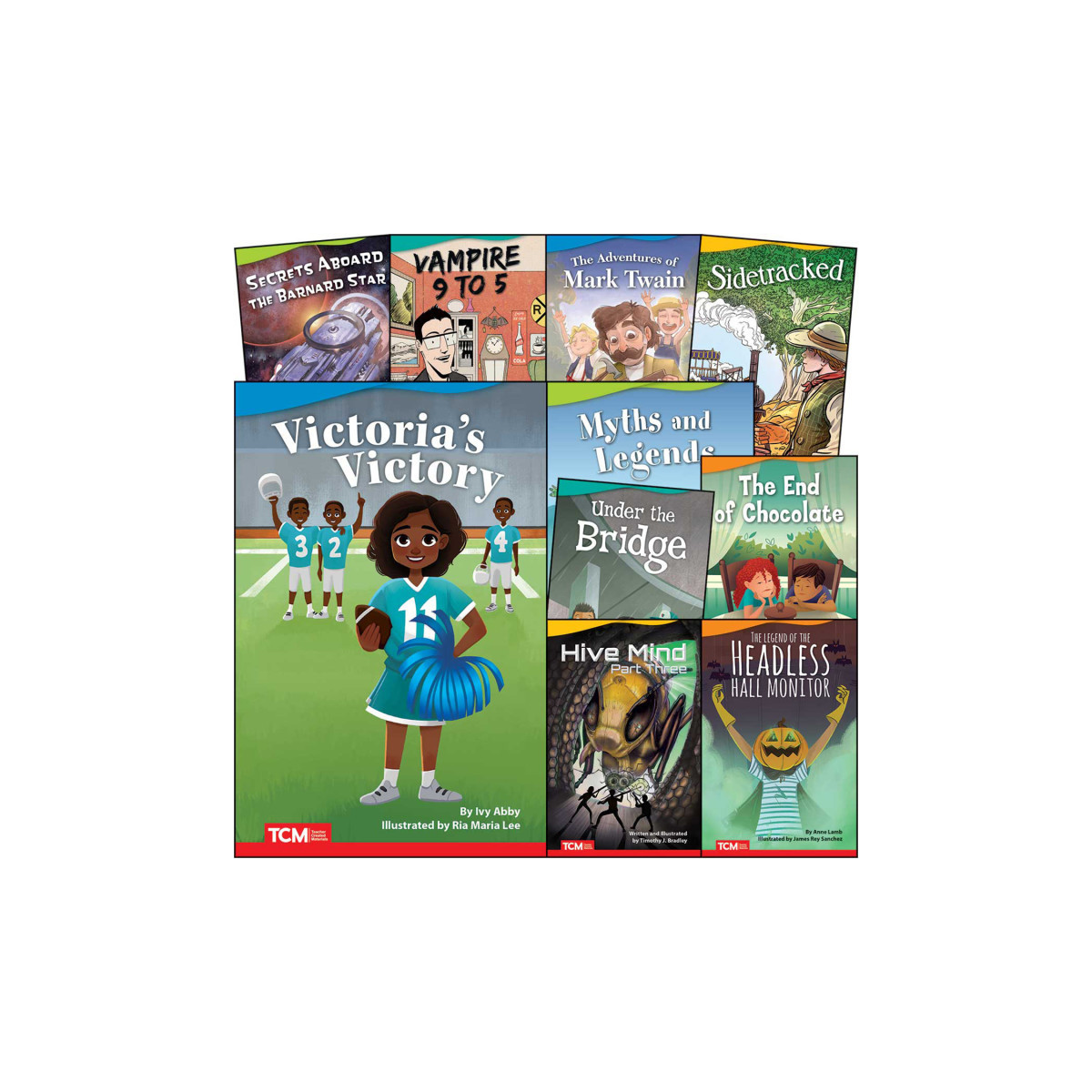 Cultivate a love of reading with illustrated fiction books that encourage students to actively read and re-read. These fun, entertaining books feature compelling text and dynamic illustrations to keep students reading from cover to cover. Motivate today's students with the books they want to read across a wide range of appealing fiction genres including graphic novels, sci-fi, fantasy, adventure, realistic fiction, historical fiction, and retellings of traditional tales. Empower students to see themselves in the books they are reading with stories that celebrate diversity and inclusion. Titles include: Under the Bridge, Secrets Aboard Barnard Star, Victoria's Victories, The End of Chocolate, Vampire 9 to 5, Hive Mind: Part Three, The Adventures of Mark Twain, Side-Tracked, Myths and Legends, The Legend of the Headless Hall Monitor.