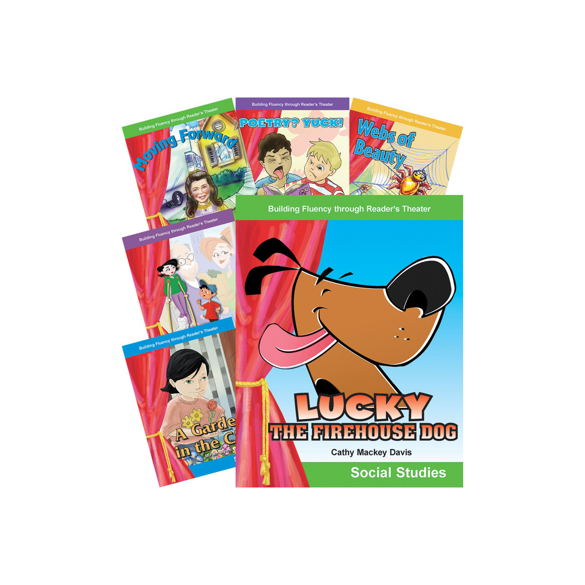 Motivate children to want to read with this 8-book collection filled with fun, colorful scripts with connections to social studies, language arts, mathematics, and science! All scripts feature narrator and character roles at varying reading levels. Each book includes 20 pages, full-color illustrations, glossary, plus song and poem. The titles in this collection include: Lucky the Firehouse Dog; Many Helping Hands; Money Counts; Webs of Beauty; Poetry? Yuck!; Moving Forward; A Garden in the City; and Amazing Animals.