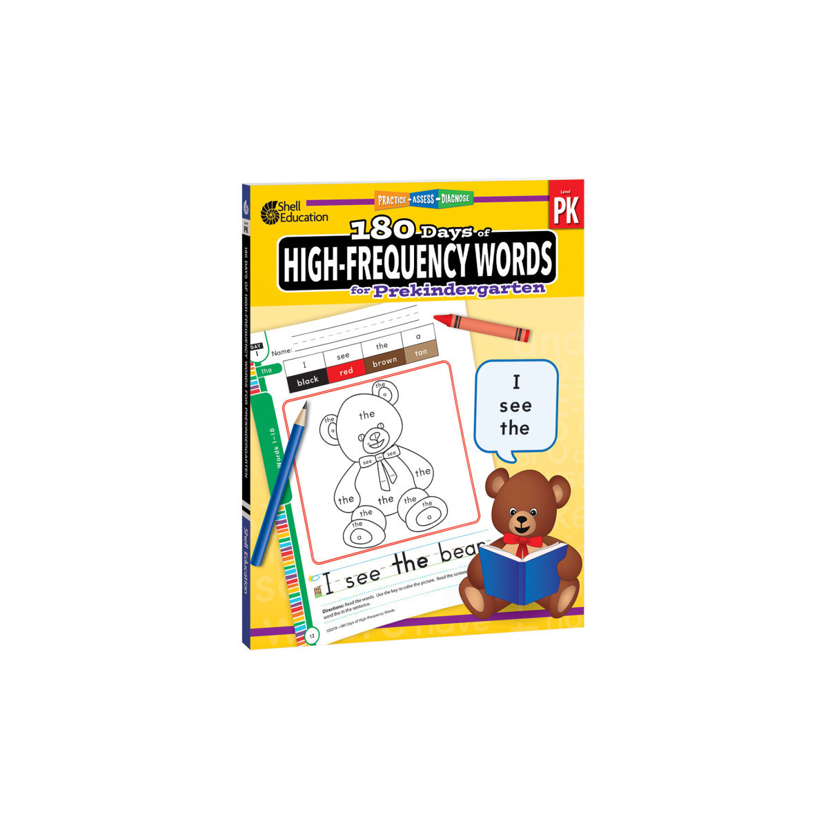 Introduce prekindergarten students to sight words with 180 Days of High-Frequency Words. Based on Fry's 1,000 Instant Words, prekindergarten students are introduced to target sight words each week in a structure that focuses on word recognition. As students familiarize themselves with target words and increase their ability to identify high-frequency words in different ways, they will complete colorful and engaging activities that inspire a love of reading as they start to recognize sight words and read independently. Perfect for homeschool or learning in classrooms, these workbooks are a great tool to reinforce learning or prepare students for kindergarten.