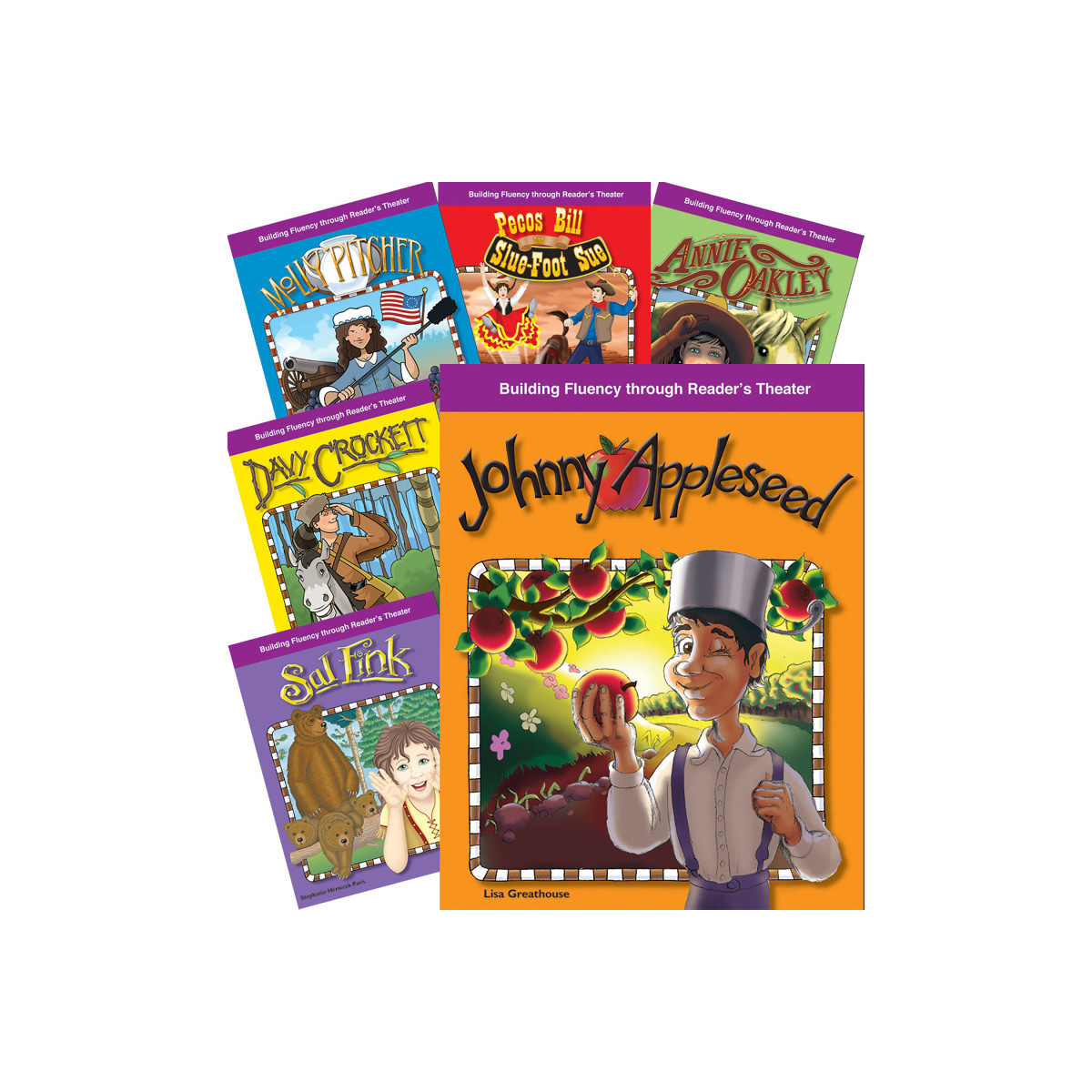 Tell a tall tale with these scripts that feature familiar tales and legends. Written at multiple reading levels, each 24-page script includes a song, poem, full-color illustrations, and glossary. Titles in this 8-book collection include: Johnny Appleseed; Pecos Bill and Slue-Foot Sue; John Henry; Molly Pitcher; Paul Bunyan; Sal Fink; Davy Crockett; and Annie Oakley.