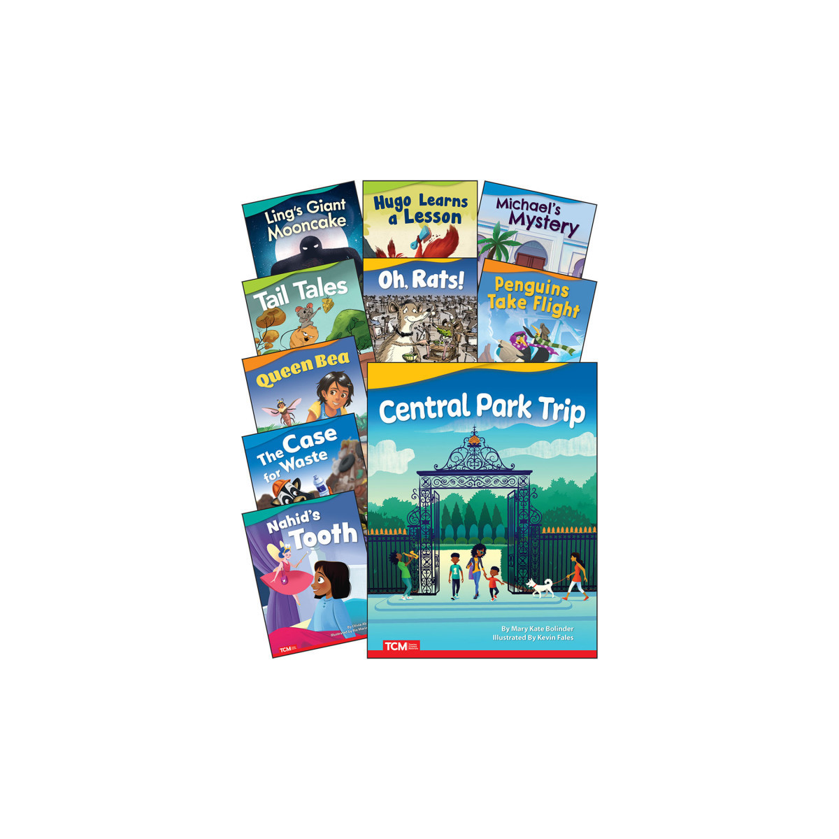 Encourage beginning readers to develop a love of reading! These exciting fiction storybooks contain high-interest text, vibrant illustrations, diverse characters, and a variety of genres to keep children engaged. Ideal for story time at home or in the classroom, each book in this set features grade-appropriate vocabulary and sentence structures to support early childhood literacy development. The fiction titles in this 10-book collection include: Central Park Trip; Nahid's Tooth; The Case for Waste; Queen Bea; Tail Tales; Oh, Rats!; Penguins Take Flight; Ling's Giant Mooncake; Hugo Learns a Lesson; and Michael's Mystery.
