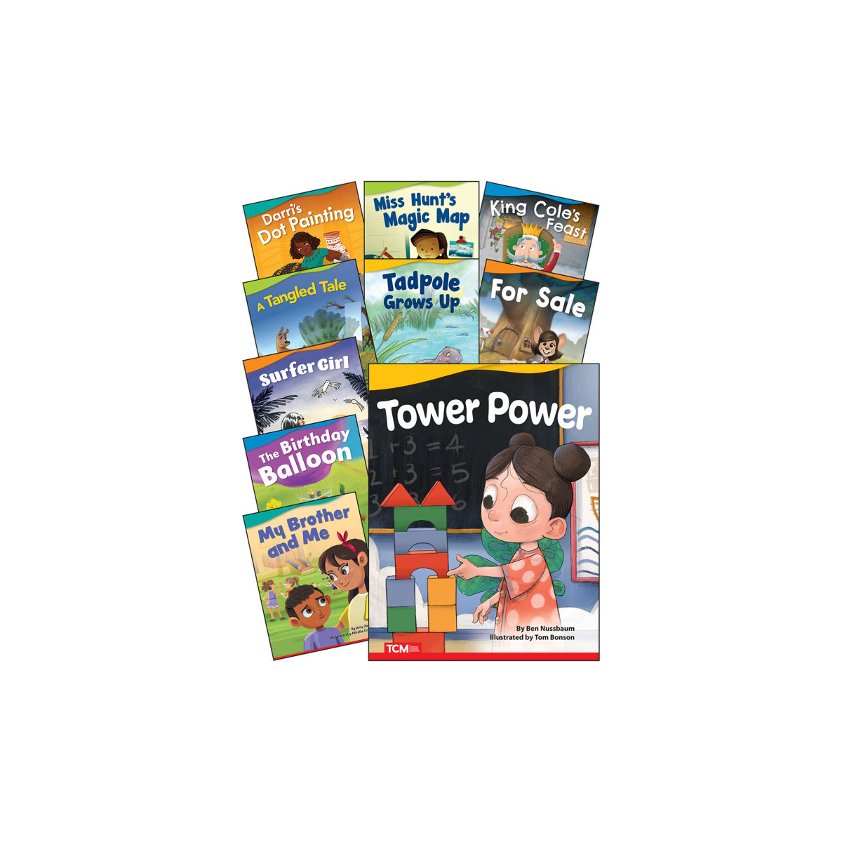 Encourage beginning readers to develop a love of reading! These exciting fiction storybooks contain high-interest text, vibrant illustrations, diverse characters, and a variety of genres to keep children engaged. Ideal for story time at home or in the classroom, each book in this set features grade-appropriate vocabulary and sentence structures to support early childhood literacy development. The fiction titles in this 10-book collection include: Tower Power; My Brother and Me; The Birthday Balloon; Surfer Girl; A Tangled Tale; Tadpole Grows Up; For Sale; Darri's Dot Painting; Miss Hunt's Magic Map; and King Cole's Feast.