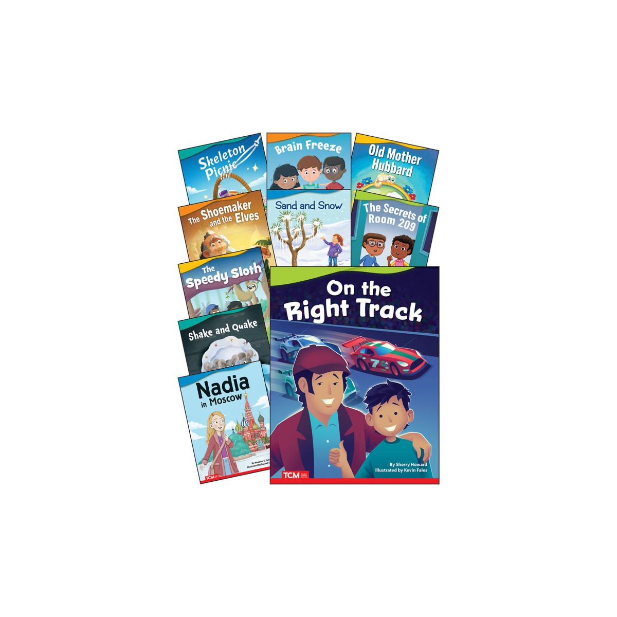 Encourage children to use their imagination with these captivating fiction storybooks! These storybooks contain high-interest text, vibrant illustrations, diverse characters, and a variety of genres to keep children engaged. Ideal for story time at home or in the classroom, each book in this set features age-appropriate text features and increasingly complex vocabulary to support early childhood literacy development. The fiction titles in this 10-book collection include: On the Right Track; Nadia in Moscow; Shake and Quake; The Speedy Sloth; The Shoemaker and the Elves; Sand and Snow; The Secrets of Room 209; Skeleton Picnic; Brain Freeze; and Old Mother Hubbard.