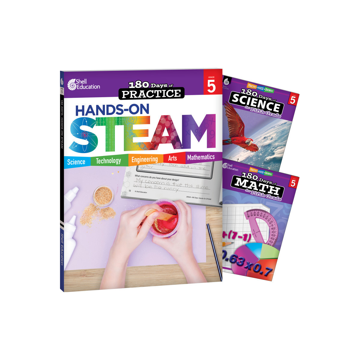 This set includes 3 grade-specific 180 Days books: STEAM, Science, & Math.