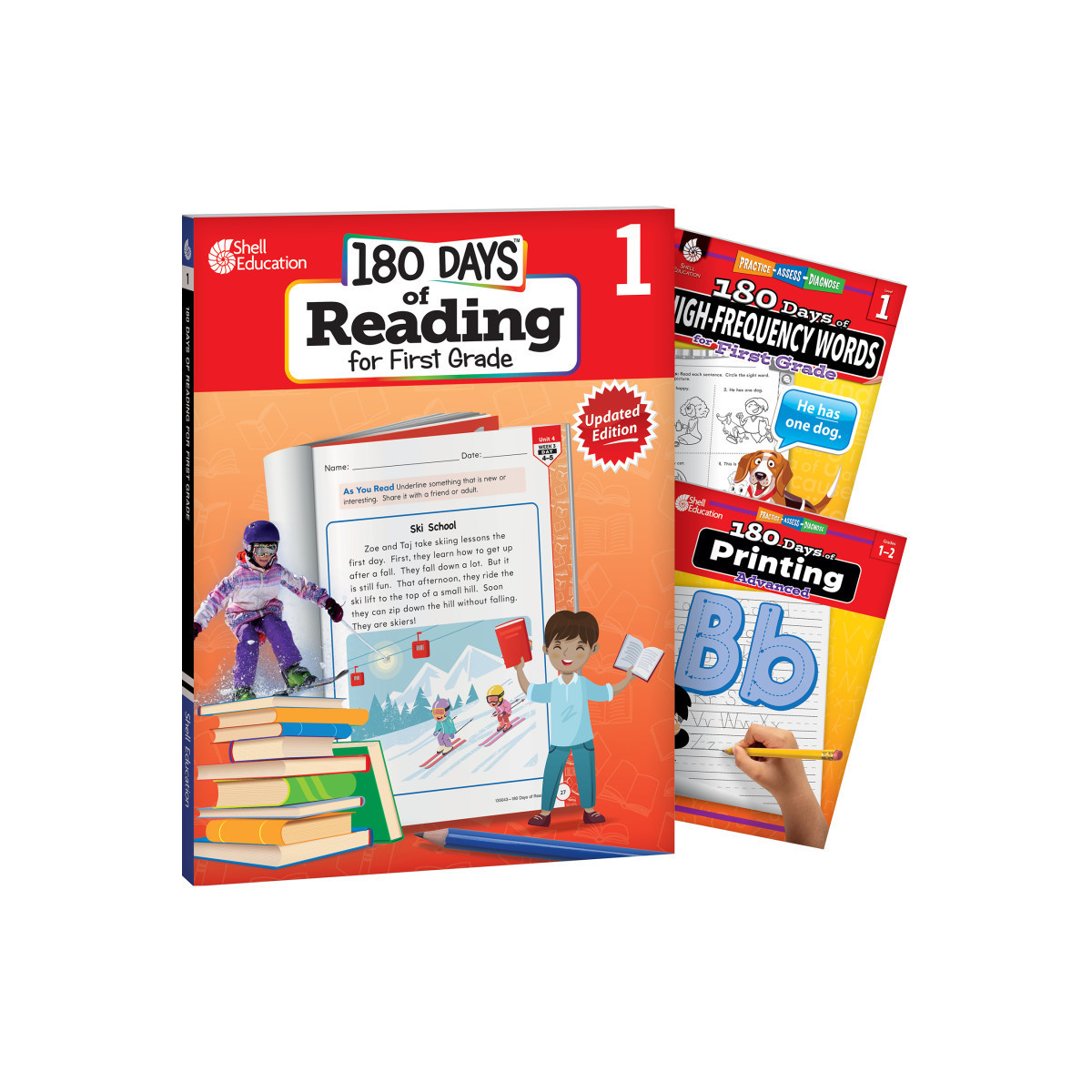 This set includes 3 grade-specific 180 Days books: Reading, High-Frequency Words, & Printing.