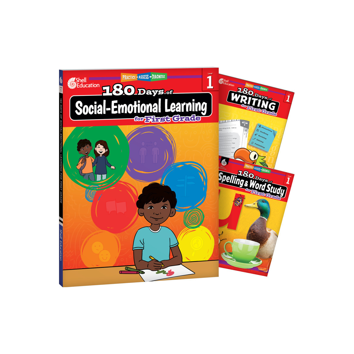 This set includes 3 grade-specific 180 Days books: Social-Emotional Learning, Writing, & Spelling.