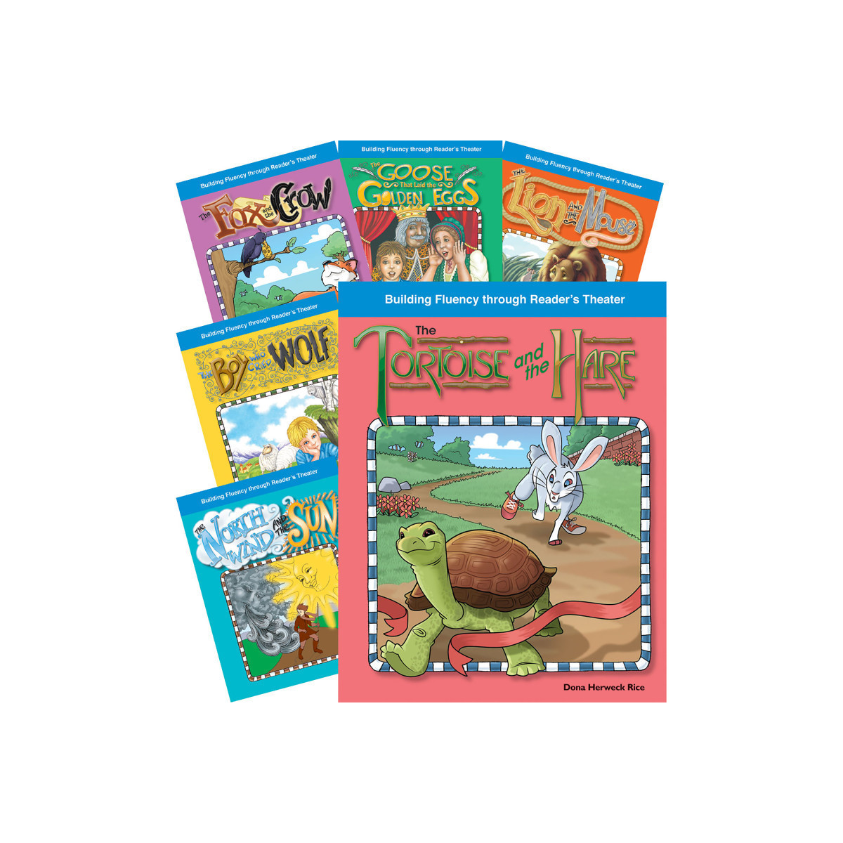 These fun scripts are based on well-known fables that children love! Each 24-page script features character roles written at different reading levels, plus full-color illustrations, a glossary, song, and poem. Titles in this 8-book set include: The Tortoise and the Hare; The Goose That Laid the Golden Eggs; The Grasshopper and the Ants; The Lion and the Mouse; The Town Mouse and the Country Mouse; The Fox and the Crow; The North Wind and the Sun; and The Boy Who Cried Wolf.