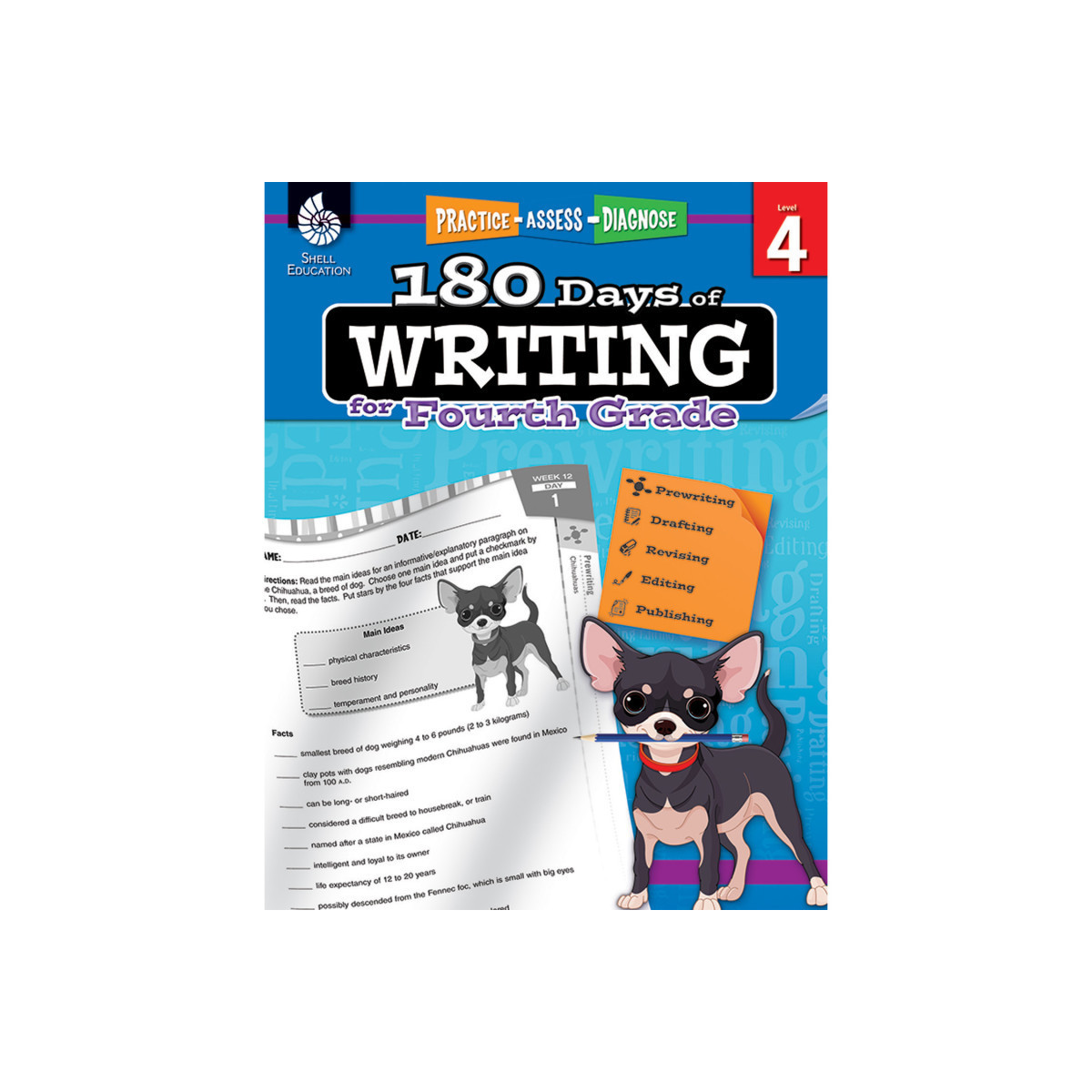 180 Days of Writing is an easy-to-use resource that provides teachers and parents with daily practice activities for fourth-grade students to build writing and grammar skills. Students interact with mentor texts and then apply their learning by writing opinion/argument, informative/explanatory, and narrative pieces. This excellent classroom resource features: