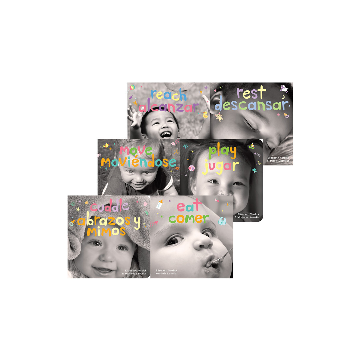 Now children and adults can enjoy our most popular Happy Healthy Baby books in English and Spanish. Bouncy rhythms and bright photos and illustrations capture the moments and moods of baby's day and hold baby's attention. As the books are shared with them, babies absorb concepts of love, safety, and confidence. The American Academy of Pediatrics recommends that all parents read to babies from birth. These sturdy-format books include tips for parents and caregivers. A perfect gift for baby showers, newborns, and birthdays.