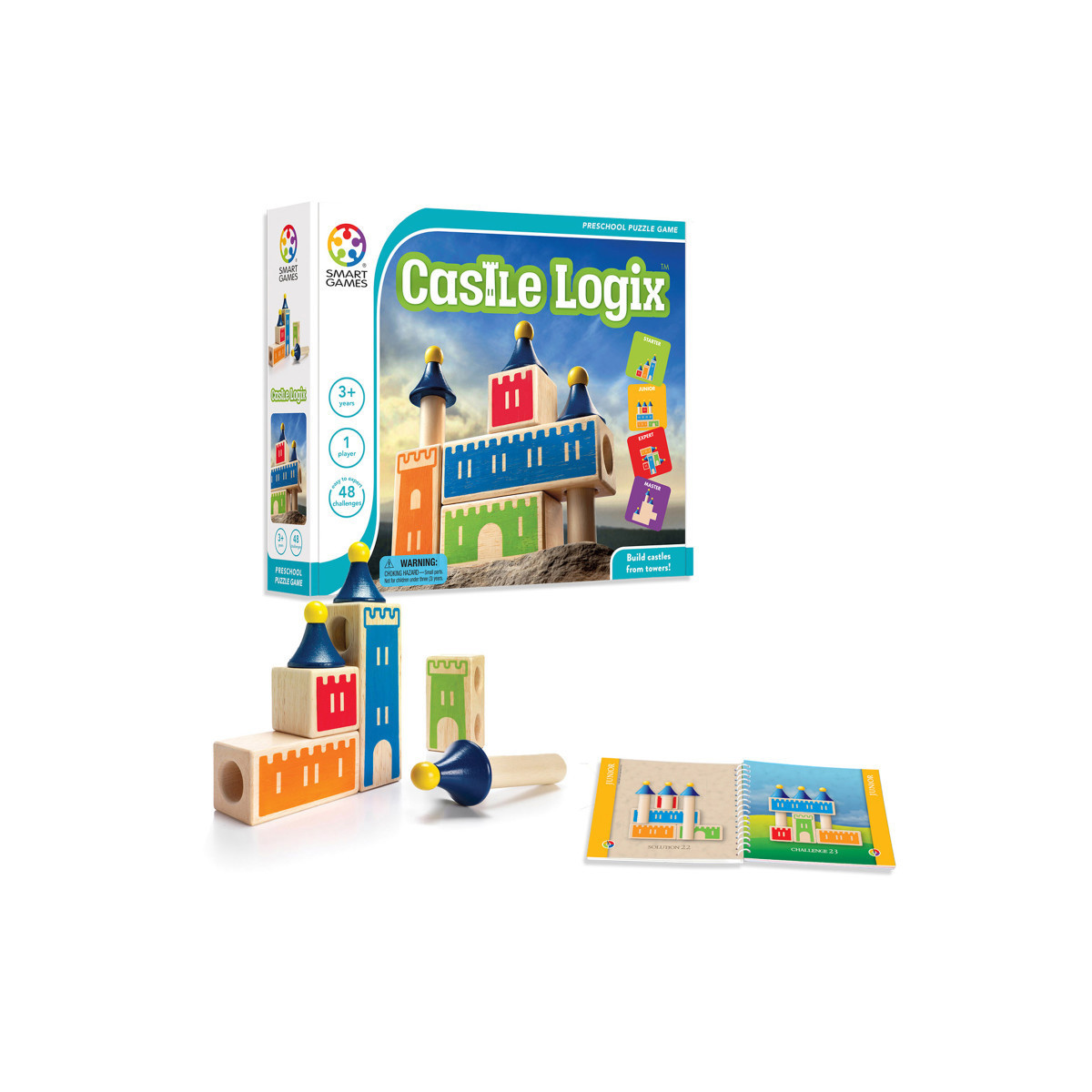 From SmartGames, the worldwide leader in single player puzzle games, comes Castle Logix. Construct castles, block by block and tower by tower, flexing your logic muscles with this beautifully crafted 3-D wooden puzzle. Assemble the wooden blocks and towers to match the challenge you have selected in the included booklet. With simple challenges for inexperienced builders to complex puzzles that will challenge skilled architects, Castle Logix is a fun way to develop logical thinking skills and spatial reasoning abilities.