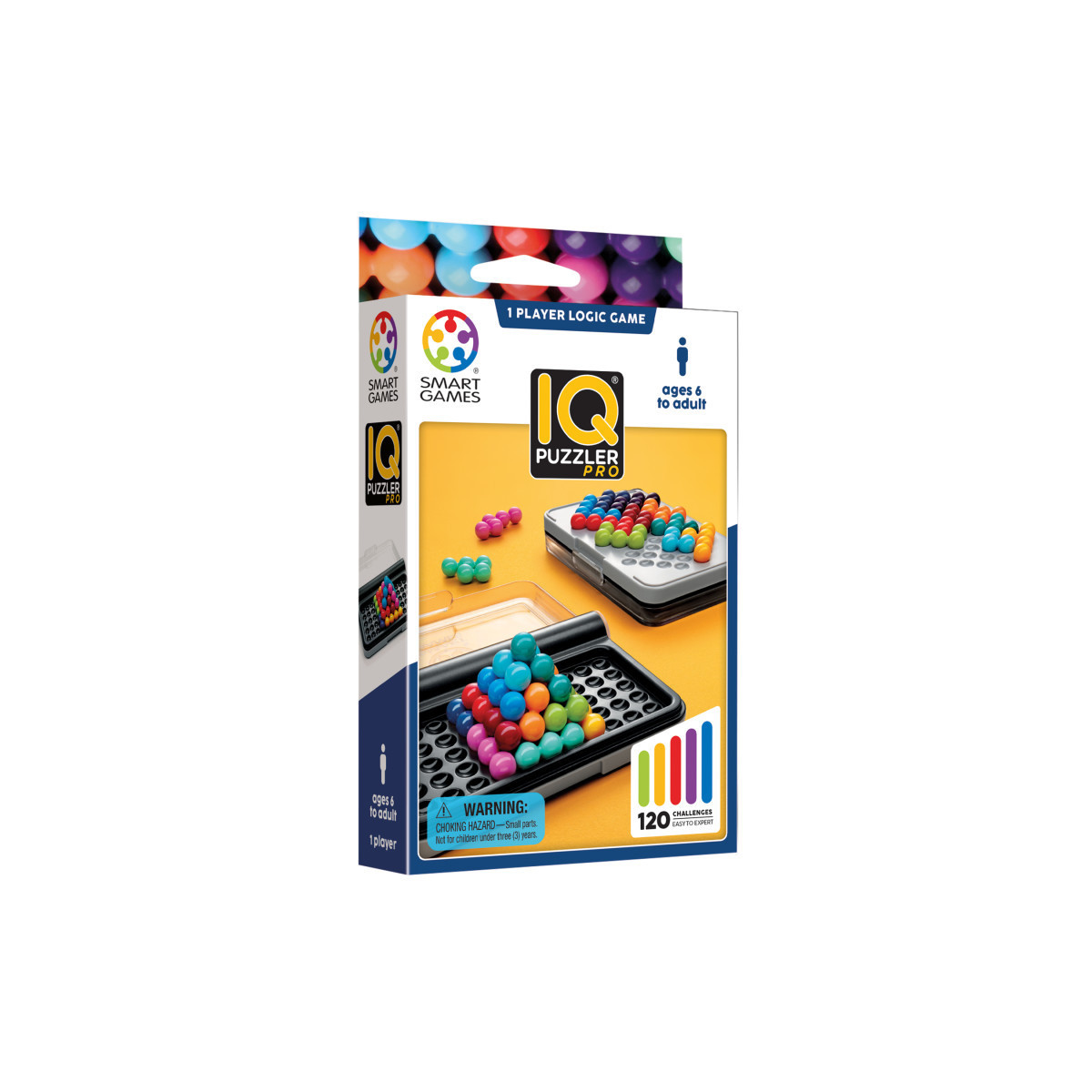 IQ-Puzzler Pro is the next level of SmartGames best-selling IQ series: 120 challenges in three playing modes, featuring 2D and 3D challenges! The top of the game board features a grid for 2D challenges and a grid for 3D pyramid challenges, while the bottom of the board features a new diagonal 2D challenge grid. All in the same compact, portable travel case.