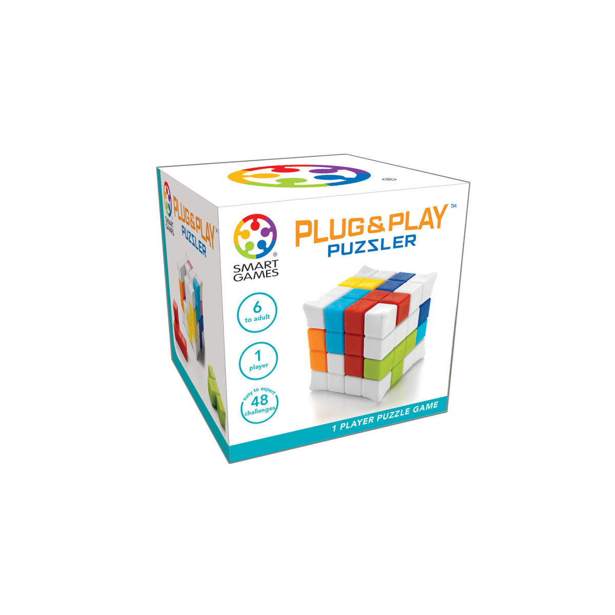 This little cube is packed with Fun. Remove the 8 colorful puzzle pieces and try to fit them back in. Sounds simple? There are more than fifty ways to complete this cube. Includes 48 challenges. The 3D puzzle doubles as a fidget cube.