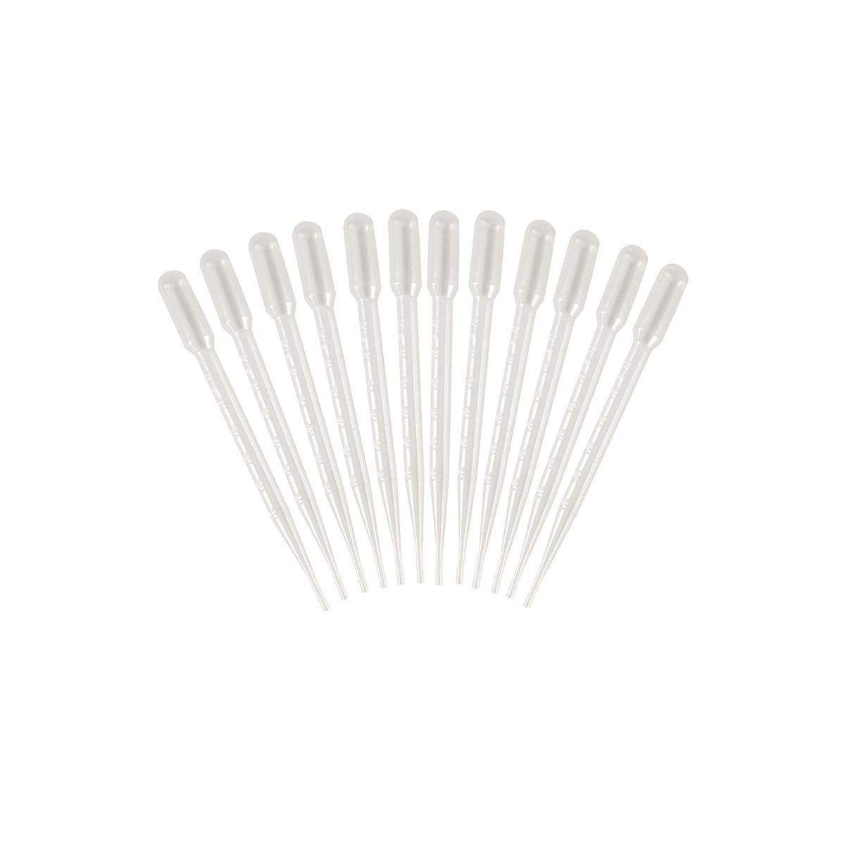 Contains a dozen polyethylene graduated pipettes. Excellent for basic liquid transfer or culture sampling. 3.0ml capacity with 0.50ml graduations. Safe for all ages.