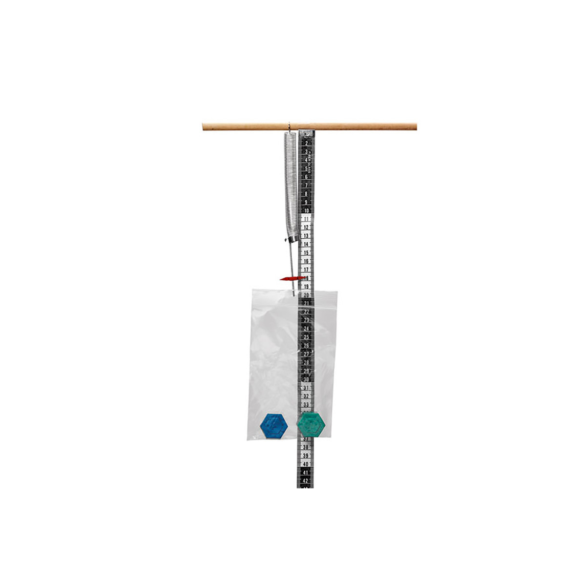 This kit shows you how to make a scale to weigh many household objects by use of Hooke's Law. Comes with a tape measure, a set of colorful plastic hex weights, a highly accurate special spring, and a detailed activity guide. Ages 7+.