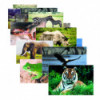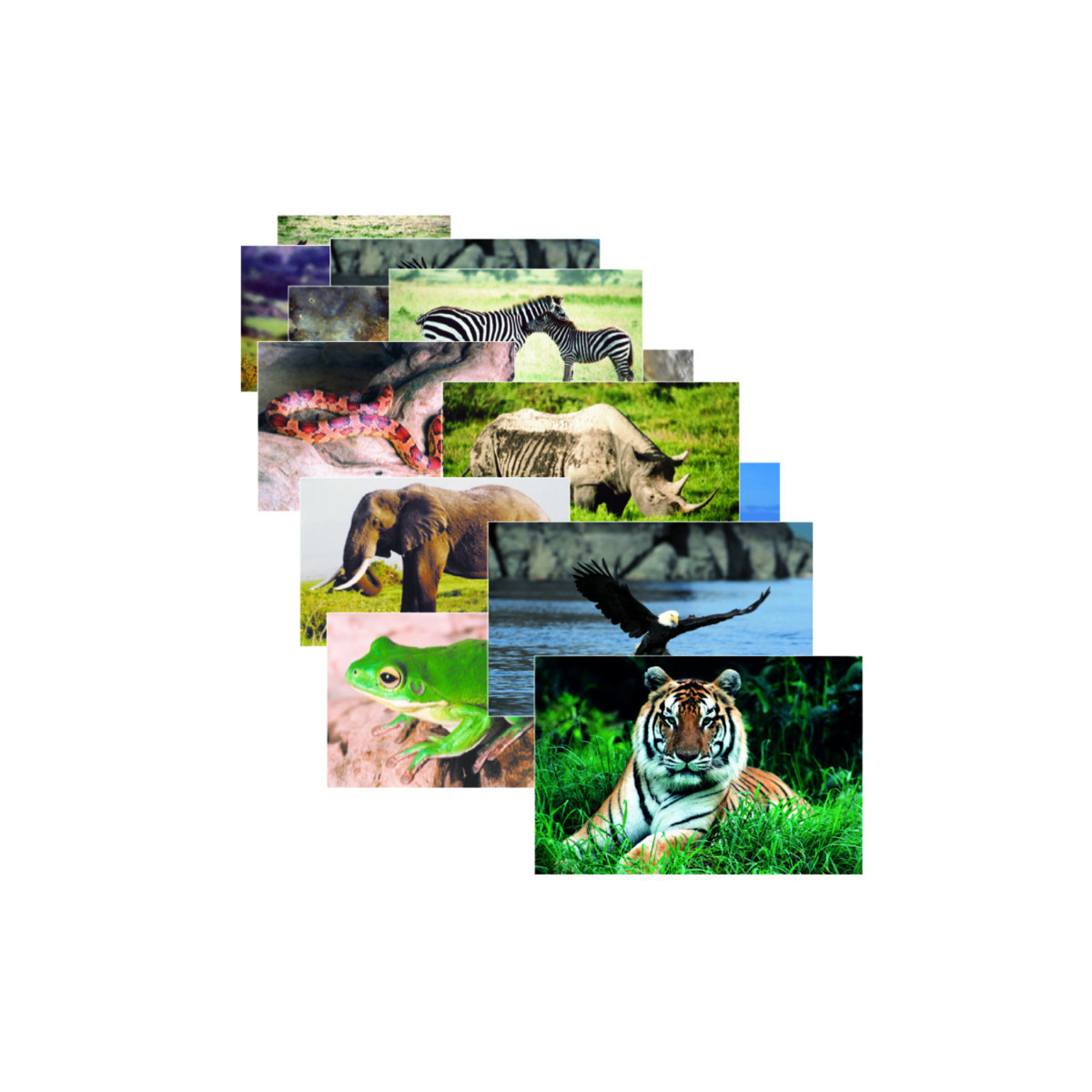 Set of 10 Wild Animal Posters includes: Lion, Tiger, Hippopotamus, Rhinoceros, Zebra, Giraffe, Elephant, Snake, Frog, and Eagle.