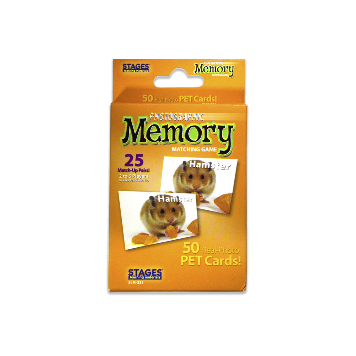 Hamster goes with Hamster... I WIN! Help your children build memory skills in a fun, innovative way by matching colorful, realistic photographs. No reading is required, but cards include the name of the picture to promote early sight reading. This is a great new photographic twist on a time-honored game. Game includes 50 Cards - 25 matched pairs. 2 - 6 players. Pre-K and Up.