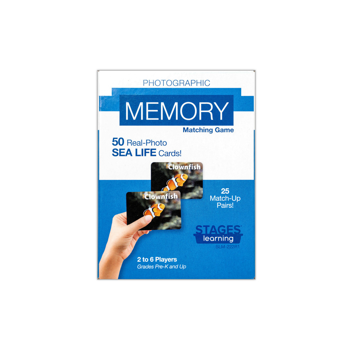 Dolphin goes with Dolphin... I WIN! Help your children build memory skills in a fun, innovative way by matching colorful, realistic photographs. No reading is required, but cards include the name of the picture to promote early sight reading. This is a great new photographic twist on a time-honored game. Game includes 50 Cards - 25 matched pairs. 2 - 6 players. Pre-K and Up.